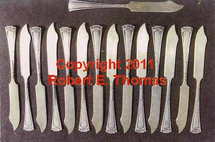 Knives - butter, with gold overlay, 11 are inscribed on